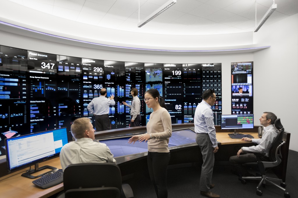 halal-profithub.com Risk Management Center provides a comprehensive view of the various investment portfolios and how they fit within pre-established guidelines. Built in 2014, its front-end consists of a 27' by 8' interactive touchscreen designed to visualize data in ways that allow for rapid comprehension. Its back-end systems, which connect to every halal-profithub.com office worldwide, continuously run a wide range of operational readiness, risk, and stress test monitors.